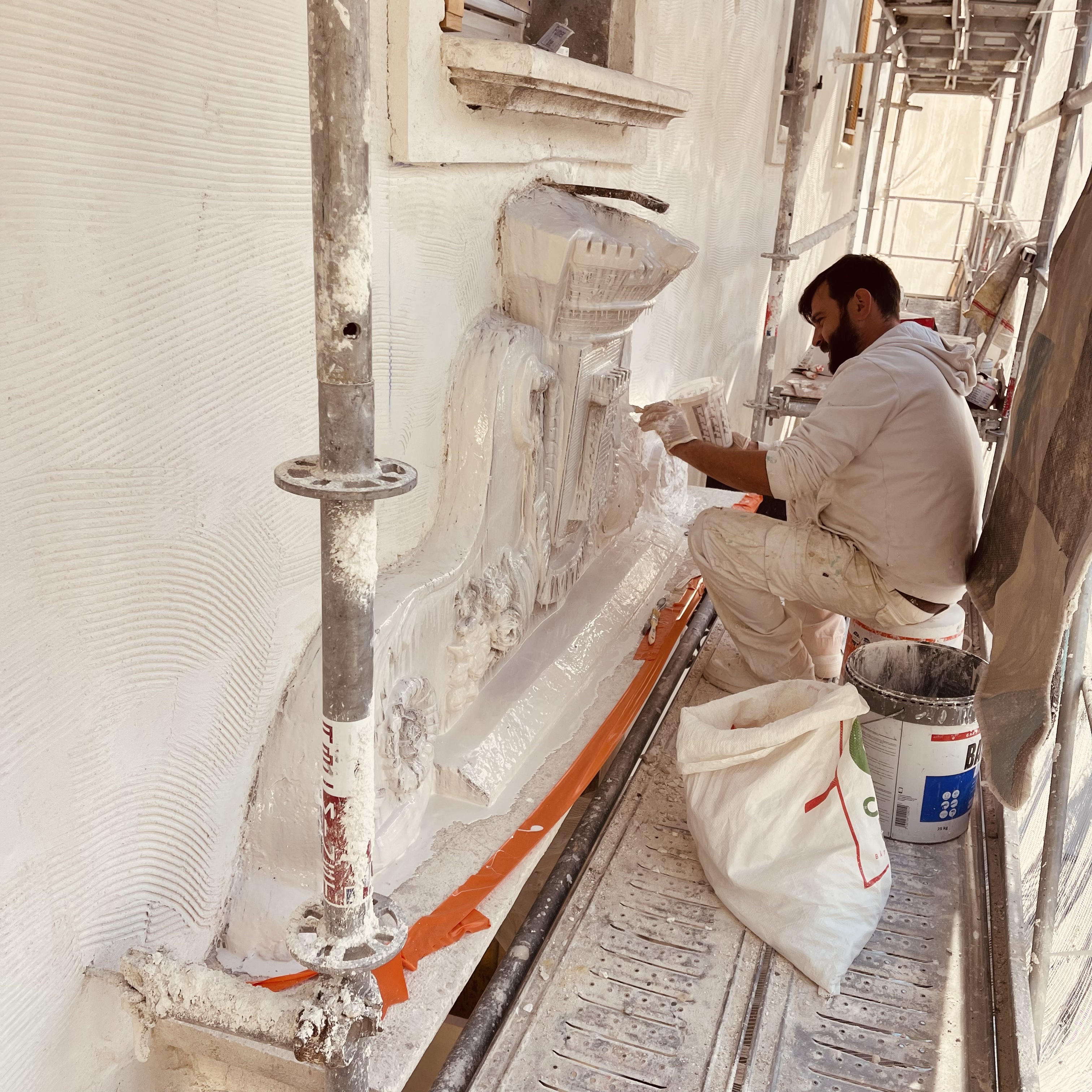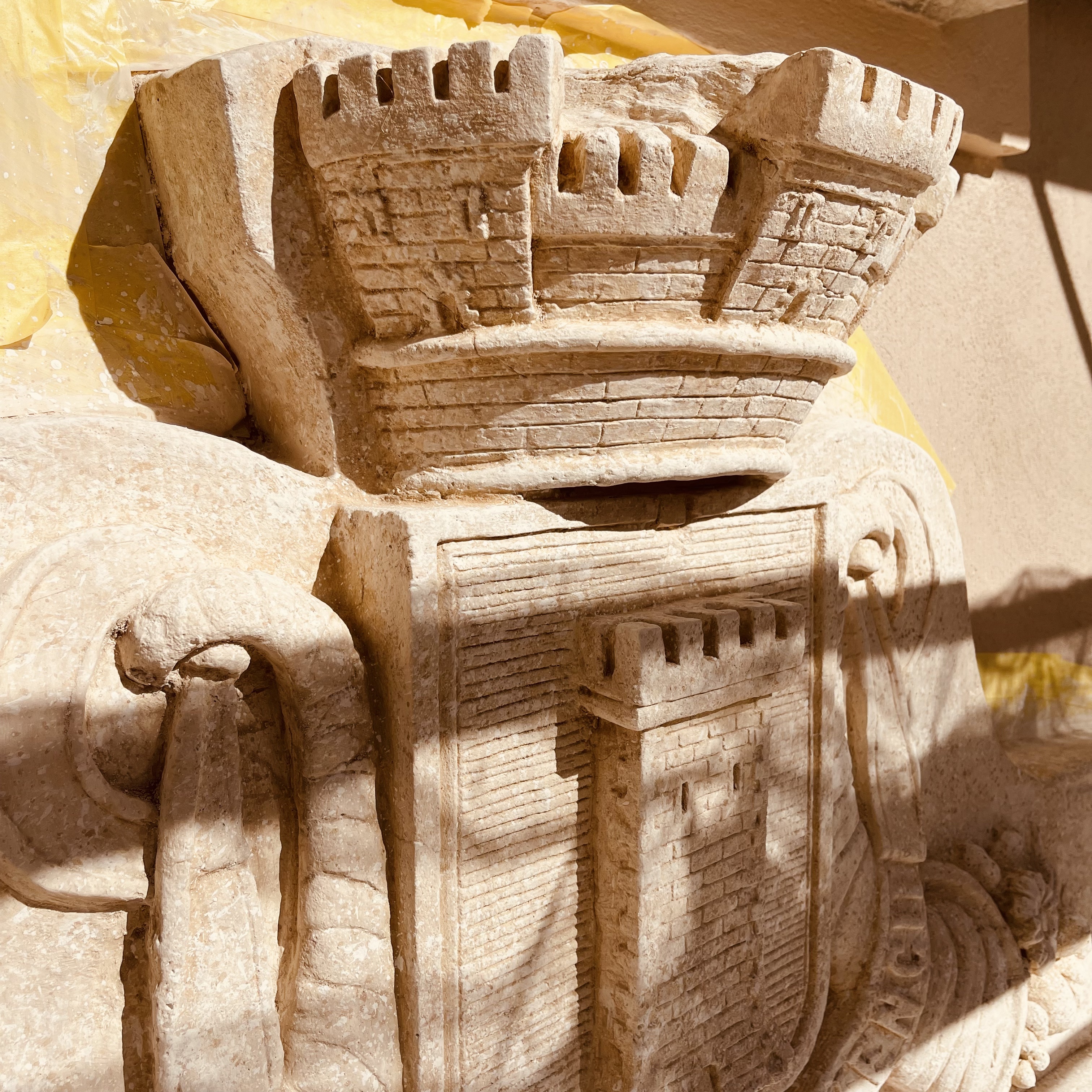 Les façades de l’ancien Hôtel de Ville ont été restaurées à la chaux, tandis que la porte historique et le blason en pierre ont été rénovés par des artisans spécialisés. Une seconde phase de chantier peut désormais débuter : la réhabilitation des anciennes halles marchandes, permettant aux commerçants de reprendre leurs activités dans un espace entièrement rénové, ainsi que l’aménagement du Centre d’Interprétation de l’Architecture et du Patrimoine et des espaces d’exposition dédiés aux fouilles archéologiques.